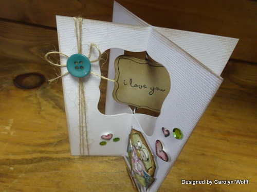 I had fun playing with my new Crazy Birds stamp set. I made this dimensional 'four way' card and added the accessories to my 'crazy bird' to make it into a Valentine's card.